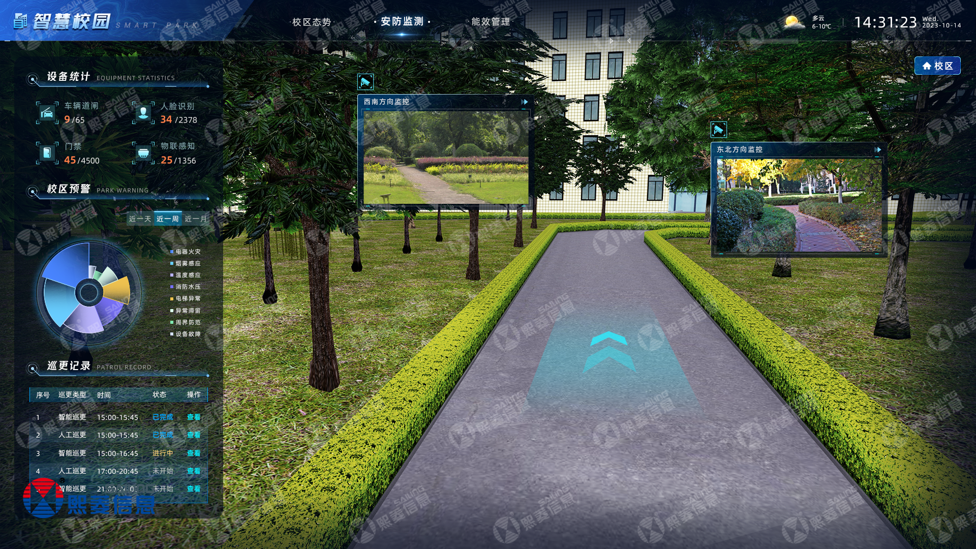 聚焦业务应用,根据当下全国数字新基建实际情况,结合多地政策关于IOC基础应用平台功能建设要点,壹定发信息的智慧校园数字孪生综合管理平台主要围绕区域态势、决策分析、应急指挥三模块集成并丰富应用功能。